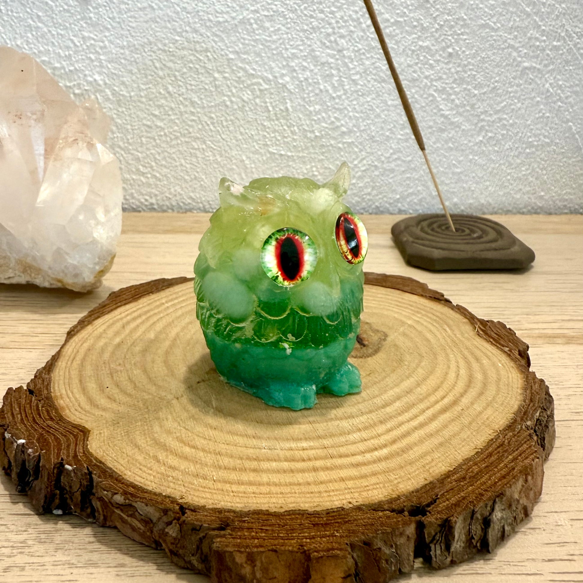 Búho de Resina con Citrino y Aventurina – Abundancia y Buena Fortuna