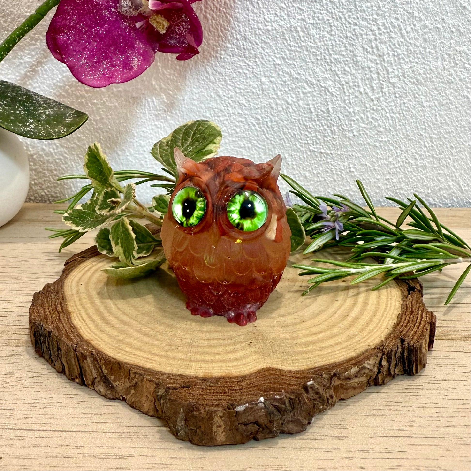 Búho de Resina con Jaspe Rojo – Vitalidad y Fortaleza